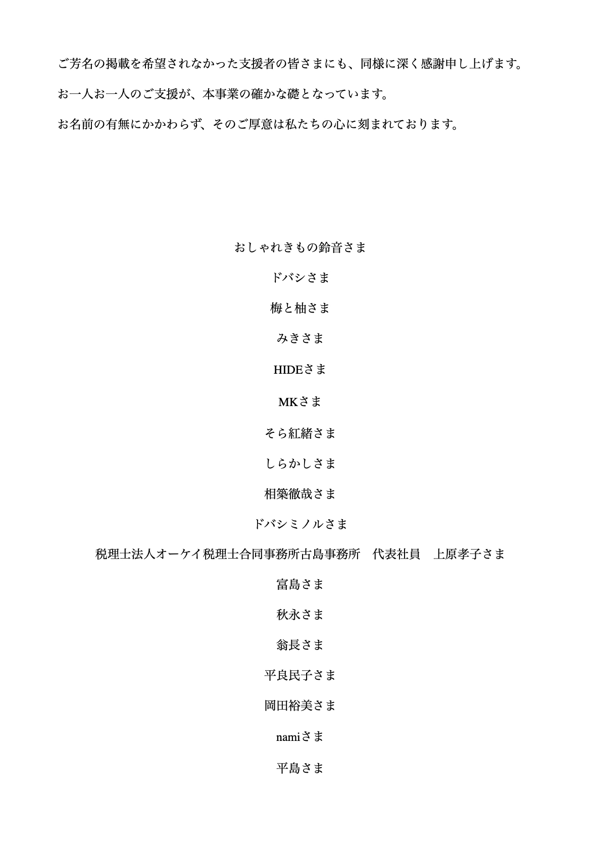 支援者様一覧